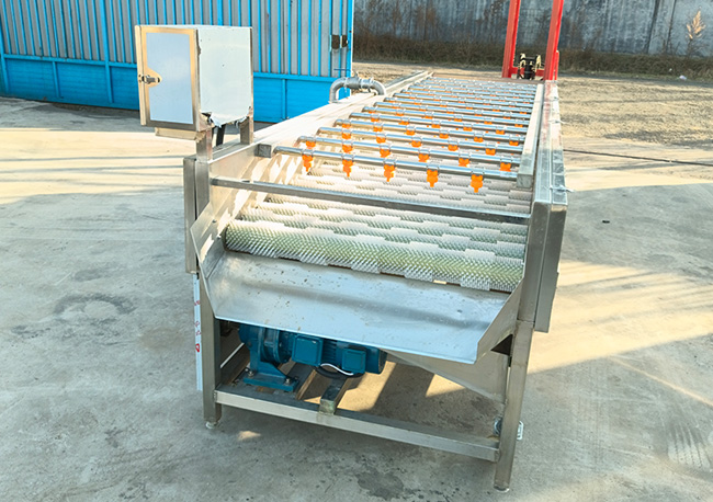 摩擦清洗:毛辊的旋转产生摩擦力,通过摩擦作用去除果蔬表面的泥土、杂质或其他污染物。